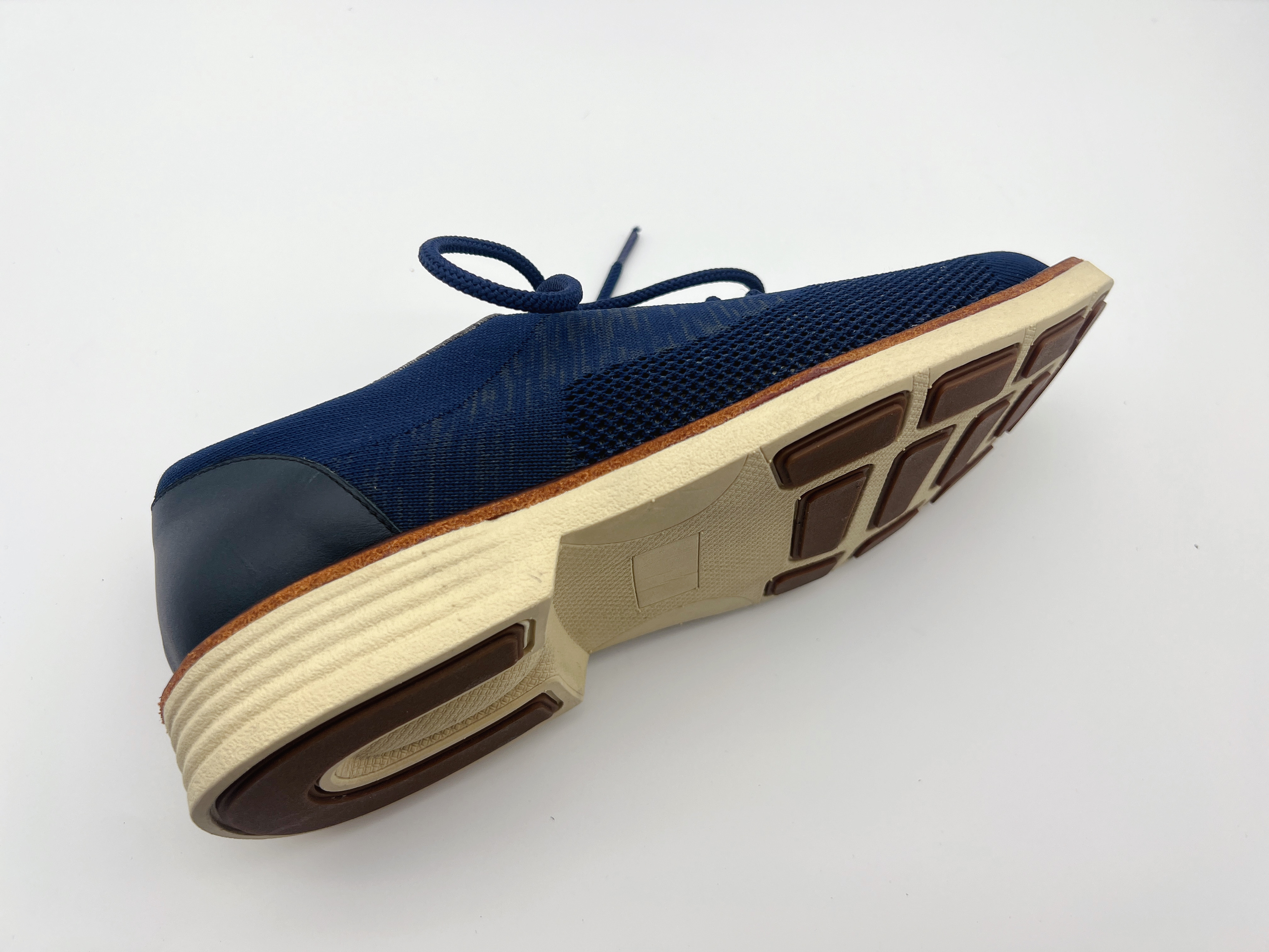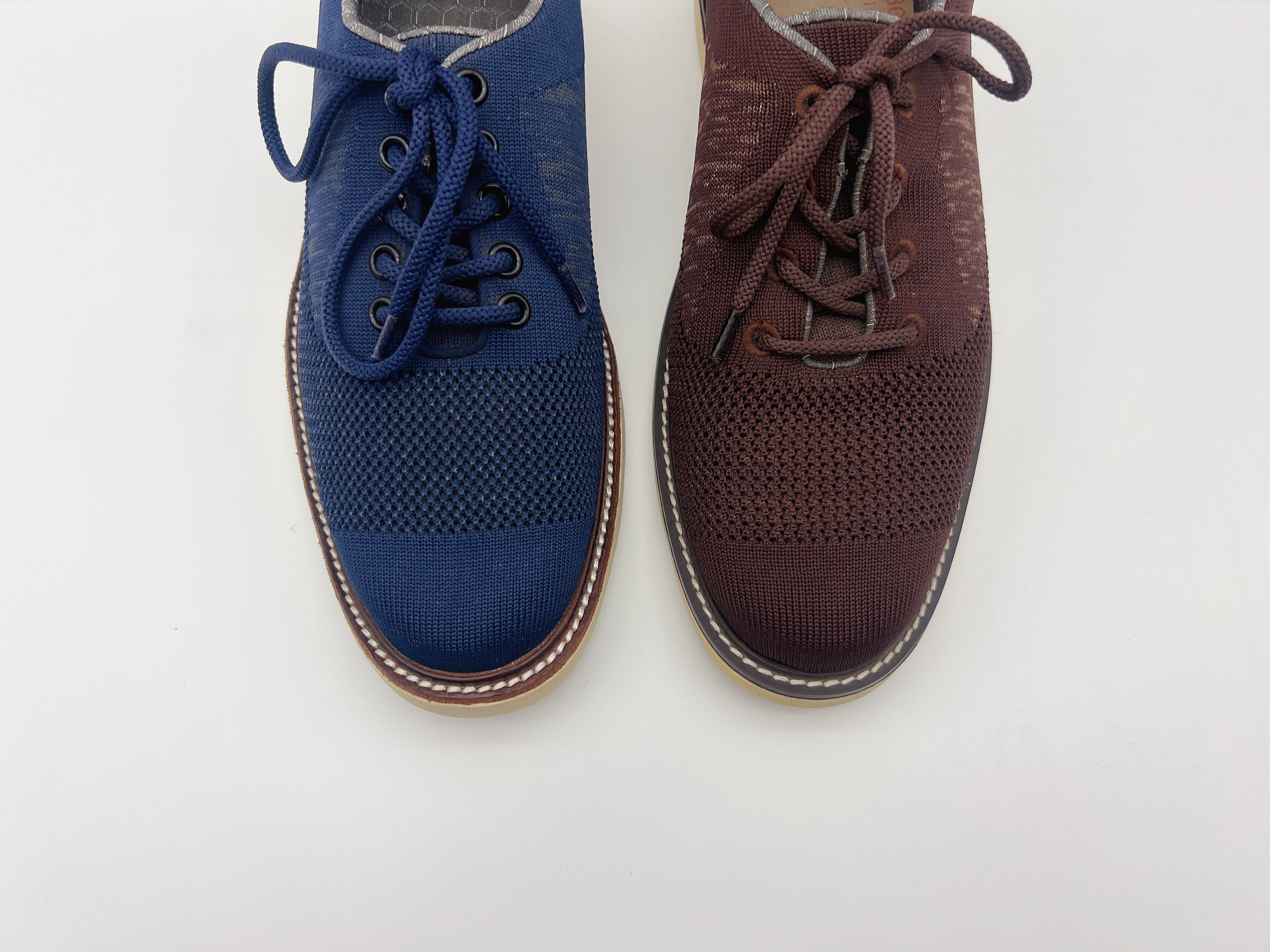 soft two-tone leather with folded, decorata piece tab piece ,oil edge in upper, 2.5mm round shoe lace , square decorate stitching with folded, full sock without decorate, two tone finish in one unit rubber outsole with pusable latex